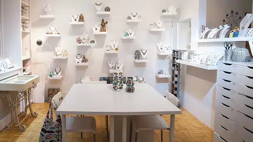 Michal Golan Jewelry is a hidden gem in the heart of New York City. Located on West 44th Street, this jewelry store offers a unique shopping experience for those looking for something special. As a jewelry designer, Michal Golan creates one-of-a-kind pieces that are handmade in her NYC studio. The shop features a stunning selection of spiritual jewelry, including Evil Eye, Hamsa, and Judaica-inspired pieces. Customers can also find mezuzahs, crosses, and other religious symbols in the store.